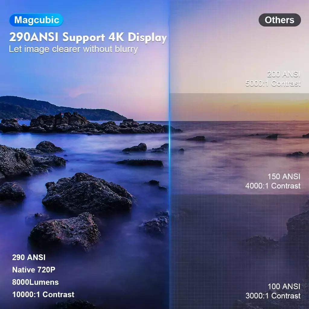 -Suporte nacional 1280*720P 4K 290 ANSI com alto-falante HIFI de 5W integrado,